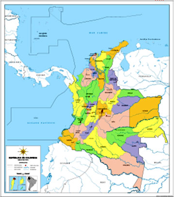 Mapa de Colombia después de la guerra con Perú (1955-1963)