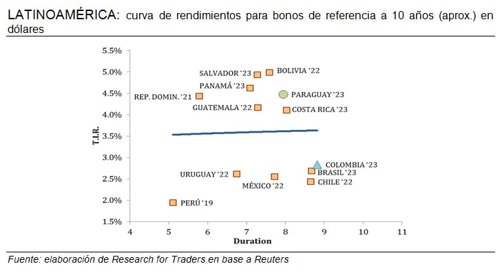 Colombia emitió también recientemente deuda con el menor cupón en su historia (2,625%) y el menor spread sobre un Treasury Norteamericano: 0,88%.