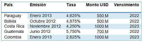 Anteriormente, Bolivia realizó una emisión a 10 años y rendimiento de 4,98%. Así como también Costa Rica y Guatemala con retornos de 4.10% y 4,31% respectivamente.