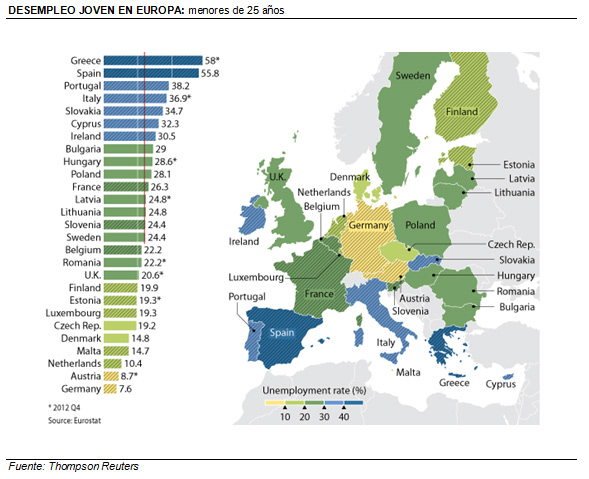 A corto plazo y en base a estimaciones de crecimiento de consenso para Europa, no queda otra expectativa que la de pensar que el empleo y las horas trabajadas sigan cayendo, limitando los presupuestos familiares y los gastos de consumo, por más que la región ya se está movilizando para revertir la situación: los cuatro grandes países del euro -Alemania, Francia, Italia y España- se comprometen a acelerar inversiones contra el desempleo juvenil. Pero es poco lo que pueda hacerse a corto plazo para incluir a una generación casi perdida en el ciclo productivo.