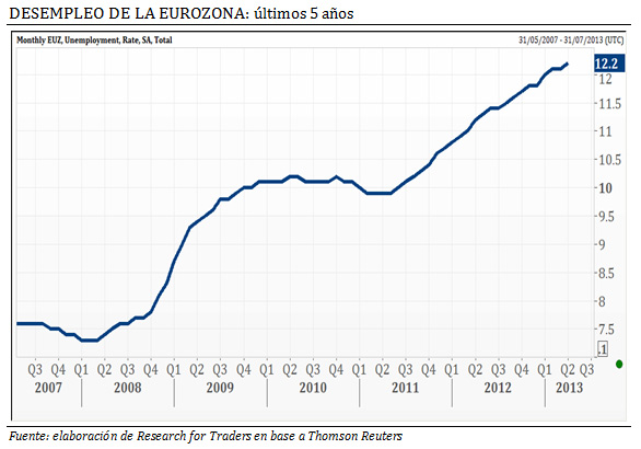Hoy los 17 países de la Eurozona están, en promedio, batiendo un récord histórico: la tasa de desempleo del bloque se elevó a 12,2% desde el 12,1% anterior, en línea con lo esperado por el mercado. Pero si excluimos Alemania, que se transformó cada vez más en una isla en un mar muy tormentoso, el resultado sería aún peor.
