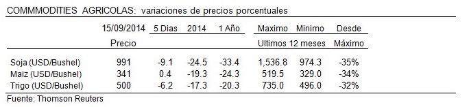 De ahí la importancia de realizar el seguimiento de la coyuntura de los mismos y de tratar de encontrar una respuesta a la continua baja de precios que vienen experimentando desde mediados del año 2012, al menos en la soja, que retrotrae su valor al que poseía a fines del año 2007, justo antes del estallido de la burbuja inmobiliaria en los EE.UU.