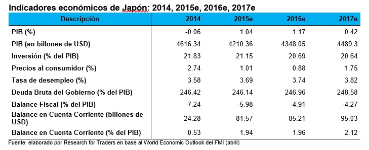 Luego de dos trimestres de crecimiento negativo, que estuvieron relacionados con el aumento del impuesto sobre las ventas en abril de 2014, la economía japonesa ha logrado crecer a un ritmo anualizado de 1,5% del Producto Interno Bruto real en el 4ºT14, pero para todo el año 2014 cayó (-0,06%). Se trata de la cuarta contracción de la economía en los últimos siete años.