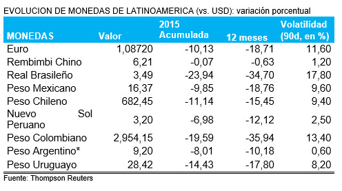 ¿Cuánto más podrían caer las monedas de la región? El índice Big Mac de The Economist ya refleja un overshooting del dólar en muchos países con una apreciación potencial respecto a los valores de equilibrio de entre 10 % y 30 % en diversos países (a excepción de Argentina y Venezuela por sus tipos de cambio oficiales). Pero creemos que este círculo vicioso continuará un tiempo más mientras no cambien los fundamentals en la región y Brasil siga siendo el eje de atención por sus noticias negativas en materia de actividad y corrupción.