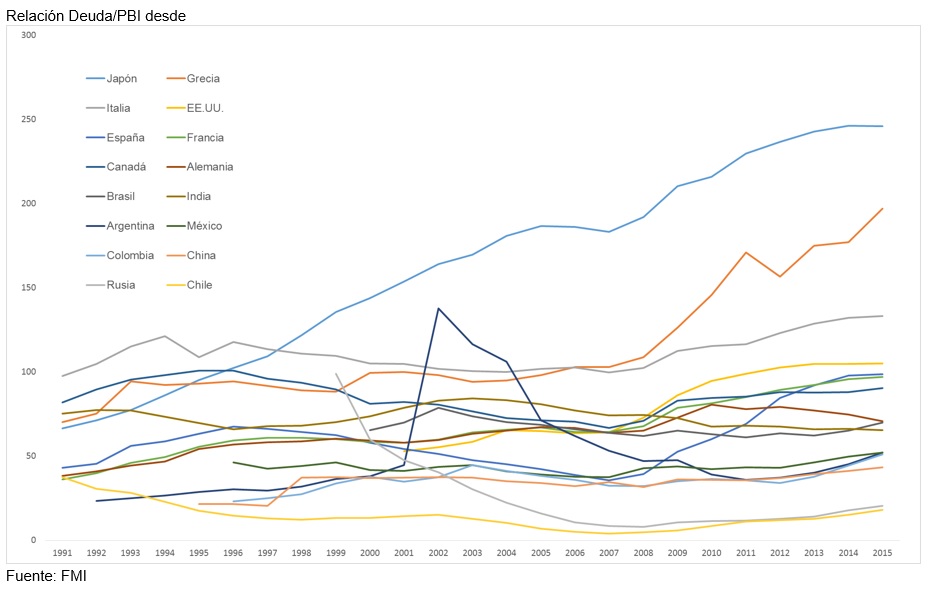 Desde la crisis del 2008 hasta la fecha, la deuda de los países centrales ha crecido a un ritmo desproporcionado. La crisis justificó soportar déficits fiscales y políticas monetarias laxas, todo en pos de evitar que el mundo entrara en recesión.