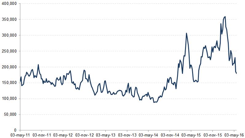 Y un día, finalmente, sobró el petróleo: Goldman Sachs ya habla de un equilibrio entre la oferta y la demanda y una eliminación del exceso de oferta global. La Agencia Internacional de la Energía también cree que la sobreoferta de petróleo se está disipando y que la oferta y la demanda se están acercando al equilibrio. No es solamente un factor de demanda debido a la desaceleración de China y otros emergentes, sino que la producción de petróleo en Estados Unidos ha caído a 8,77 millones de barriles al día en mayo, un bombeo de crudo en su nivel más bajo desde septiembre de 2014, según el Departamento de Energía estadounidense.