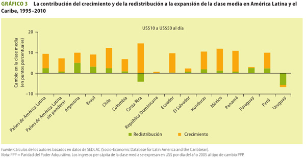 Pero ¿en qué lugar del estrato social de la región están estas personas? Una respuesta posible se puede encontrar en el informe del Banco Mundial y que arroja el siguiente resultado: “América Latina y el Caribe registró un aumento del 50% en el número de personas que accedieron a la clase media en la última década, algo que los economistas consideran un logro histórico en una región largamente dividida por la desigualdad”. En termino de personas, “la clase media en la región creció hasta comprender unos 152 millones de personas en 2009, comparado con 103 millones en 2003, un aumento del 50%“, concluyo el informe.