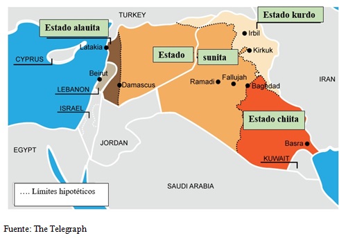 Por lo pronto, quedará por verse cómo quedan trazadas las fronteras en el plano real. La nueva realidad en el terreno, en continuo desarrollo, podría sobrevenir en un Estado alauita, gobernado por el clan Assad; otro sunita, incluyendo las áreas dominadas por el ISIS en Siria y en Irak; otro chiíta, comandado desde Bagdad por la mayoría chiíta al sur de Irak; y finalmente, otro kurdo, regido desde Erbil por una autoridad que ambiciona la autodeterminación.