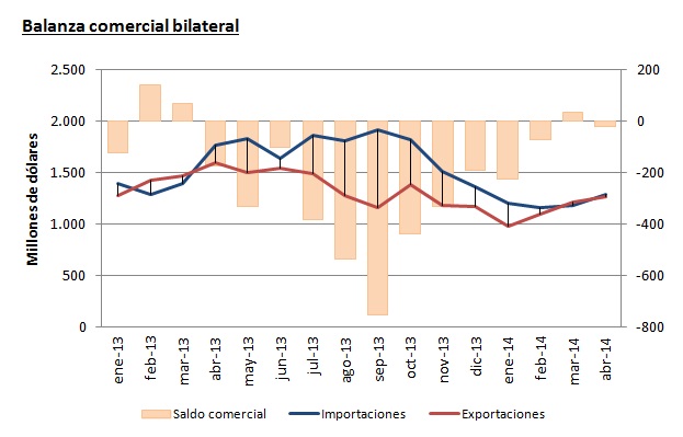 Sin embargo, los resultados de la balanza comercial de los últimos años confirman un agotamiento del ciclo, acentuándose en el primer trimestre de 2014 y se resalta mucho más cuando se analiza el intercambio comercial con Brasil, principal socio comercial de Argentina.