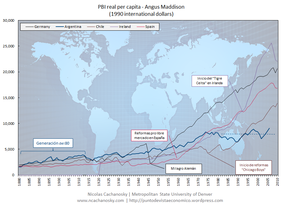Pero estos milagros económicos son, de hecho, posibles. Si, en lugar de dejar pasar oportunidades estancándose en el tiempo, Argentina hubiese hecho reformas similares, hoy la situación económica sería muy distinta. ¿Cuál sería hoy el PBI per cápita en Argentina si Alfonsín (1983), Menem (1989), o Néstor Kirchner (2003) hubiesen hecho reformas similares a las de estos países en lugar de dejar pasar la oportunidad que recibieron al inicio de sus presidencias?