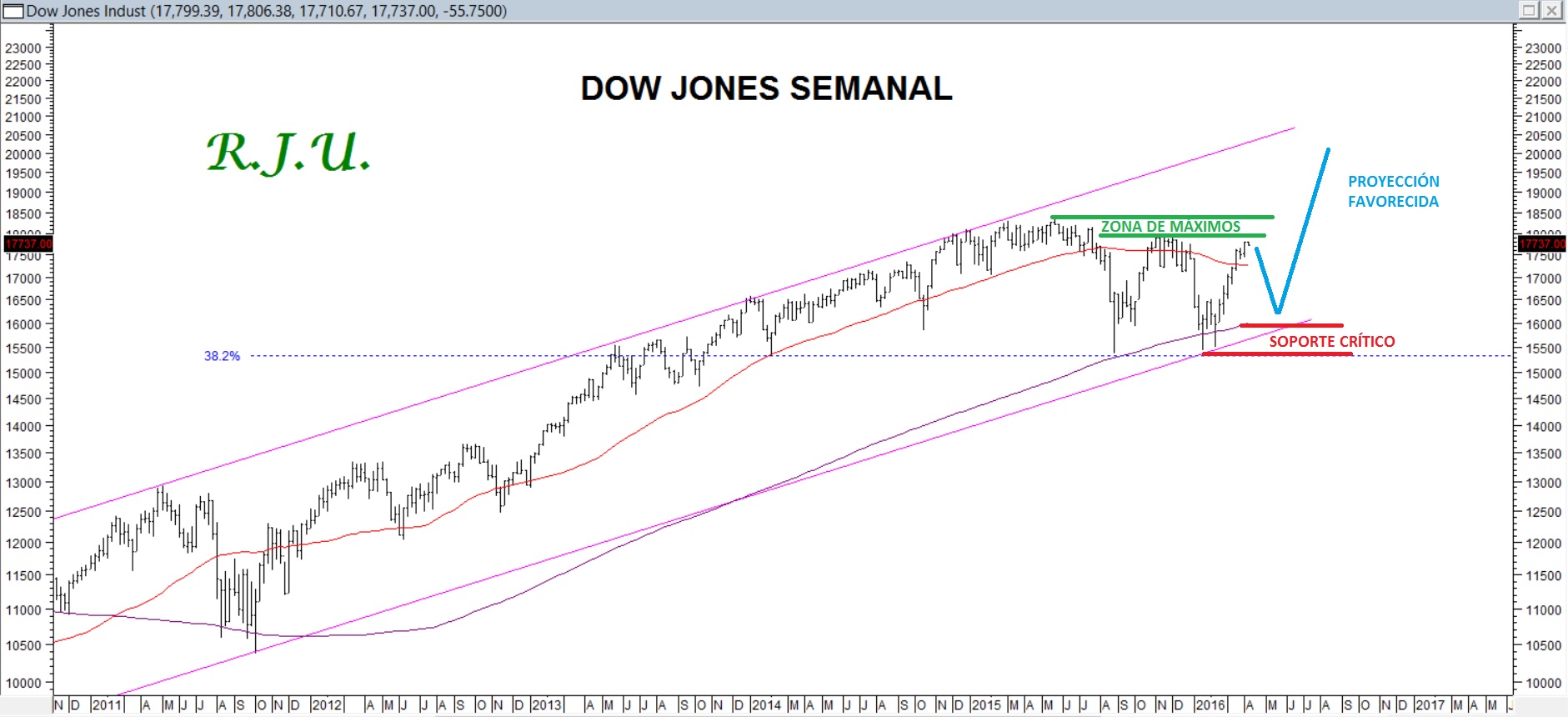 En la presente nota queremos reafirmar esta visión de un posible acceso hacia nuevos máximos históricos para el presente año 2016, que conducirían al índice Dow Jones hacia niveles más cercanos a la barrera de los veinte mil puntos. Sin embargo, en el corto plazo y previo a que pueda habilitarse ese tramo de alza mayor a máximos históricos, creemos que el mercado tendrá un nuevo recorte y por ello debemos ser cautelosos.