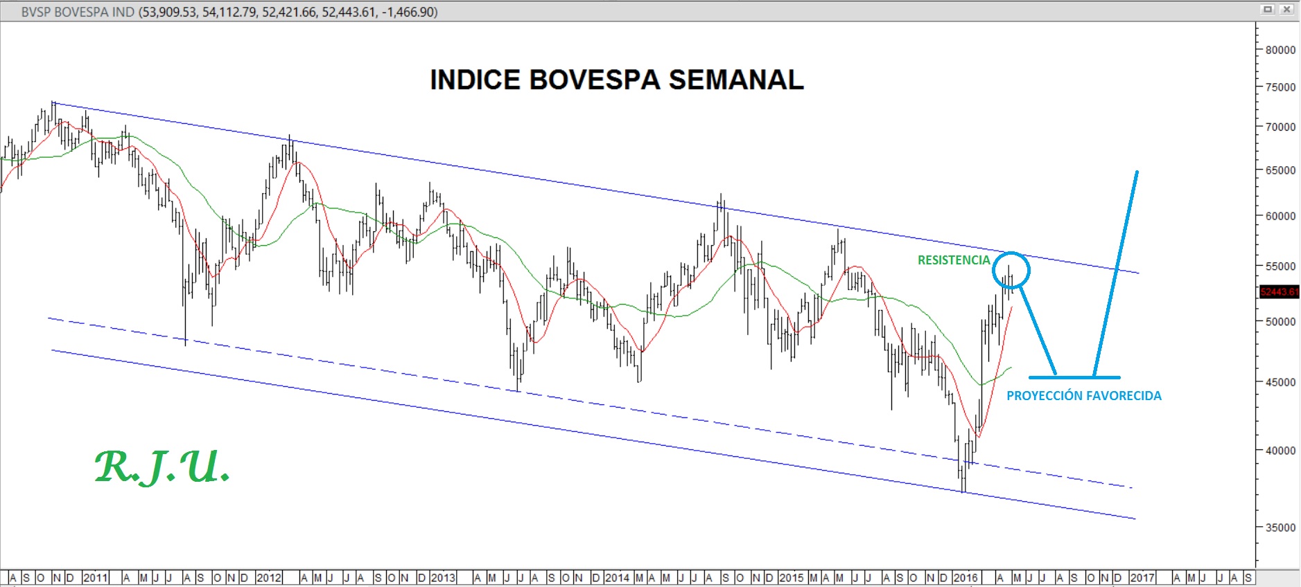 En primera instancia, debemos decir que desde nuestra lectura analítica la recuperación practicada es lo suficientemente consistente como para confirmar que el mínimo de 37 mil de índice Bovespa en reales y de 9 mil en términos de dólares habrían marcado un piso significativo a todo el bear market de este mercado en fuerza desde el pasado año 2010. En este sentido, creemos que el proceso de recuperación actual podría formar parte al inicio de un nuevo ciclo alcista de mediano plazo a largo plazo para este mercado, que al menos en términos de reales esperamos que acceda por encima de los valores históricos de los 73 mil puntos alcanzados en el año 2010.